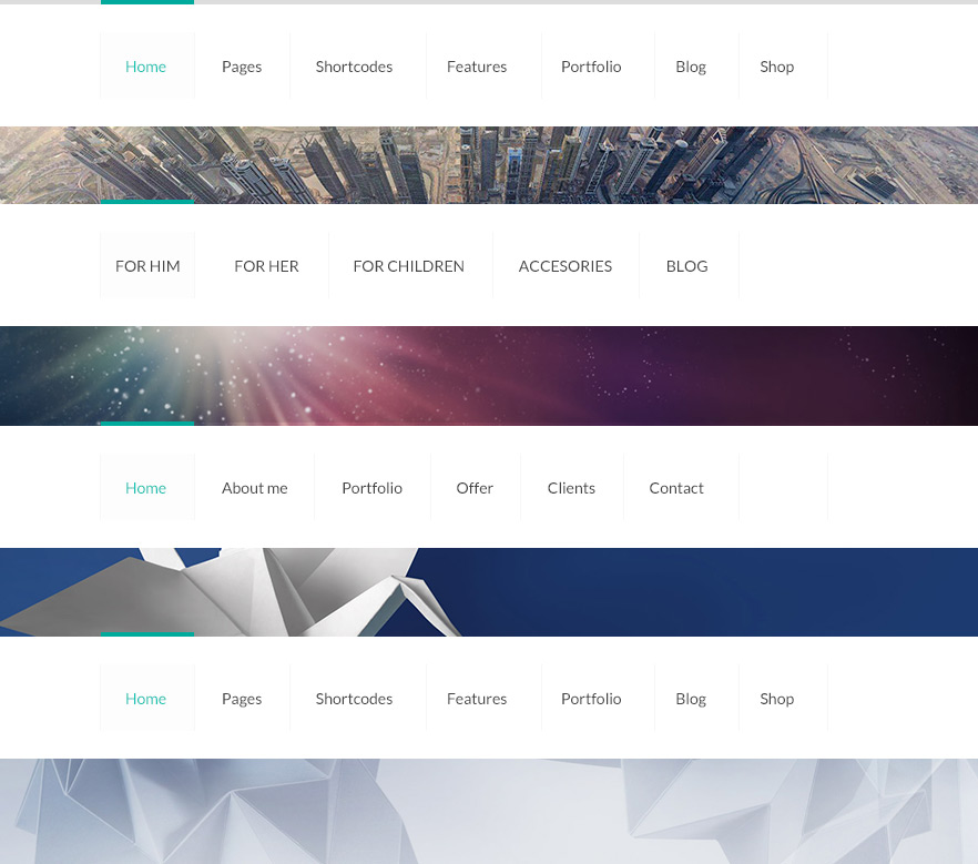 With Be, each page can have different menu. You are no longer limited with only one menu for whole website. You can also setup different header styles where menus are for different pages.